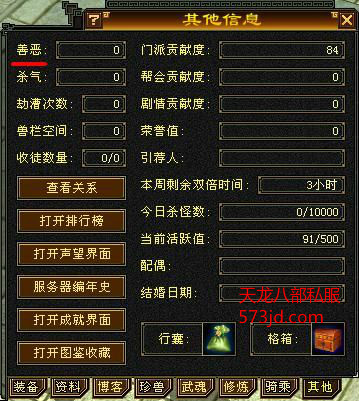 鼠标移至善恶值处,可以显示出当前的师傅等级、弟子数目及可兑换的经验值