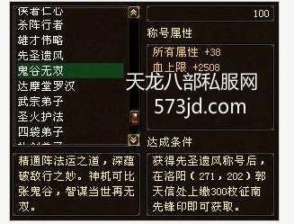 7:兵圣奇阵称号----击杀楼兰新副本困难模式可获得征南先锋印,集够一定数量即可兑换,最高级称号为鬼谷无双,100阅历值。